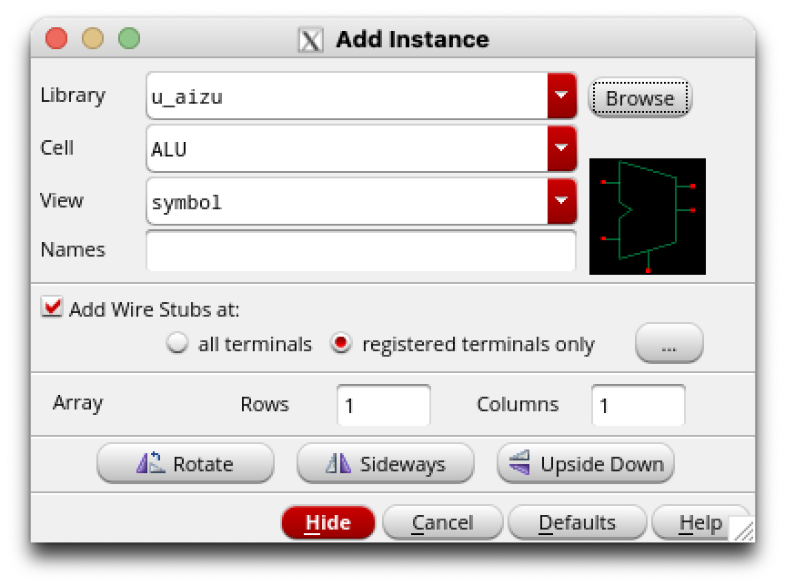 同じく、レジスタファイルはu_aizuライブラリに含まれているので、自分で作成する必要はない。